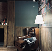 整體空間以多元文化場景為構想,透過造景轉換與材質細節,打造兼具趣味互動與沉浸體驗的設計語彙。入口區域設計為一座書櫃造型的機關型大門,結合隱藏式開門結構與復古書房語彙,營造戲劇性與故事感兼具的迎賓體驗。訪客踏入空間的瞬間,即感受到設計帶來的驚喜與探索感