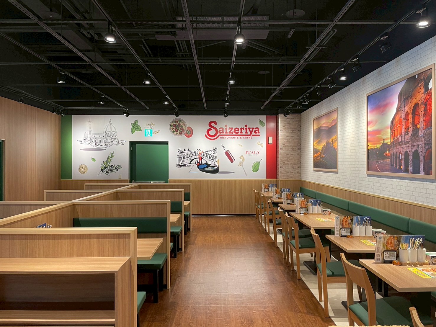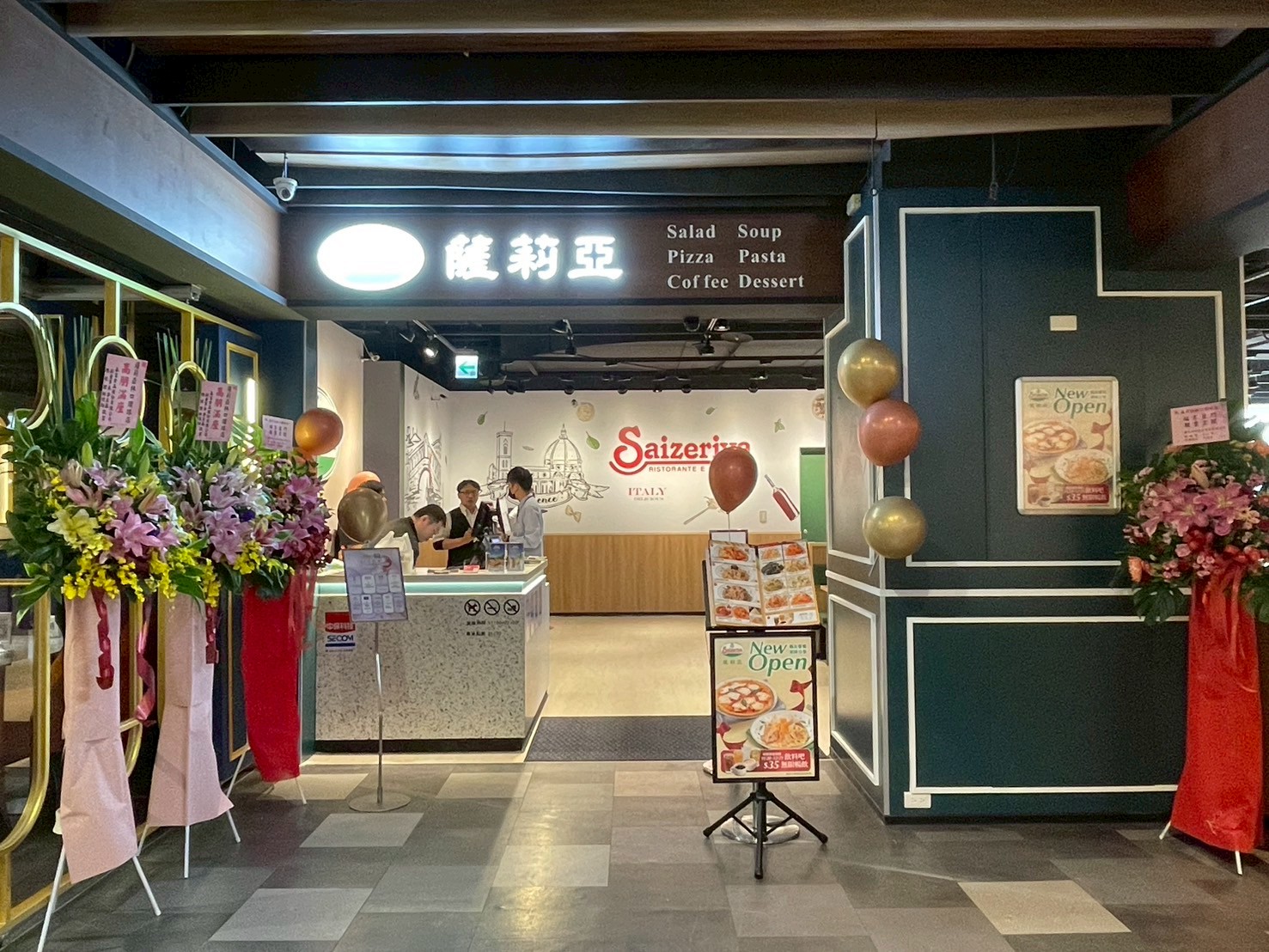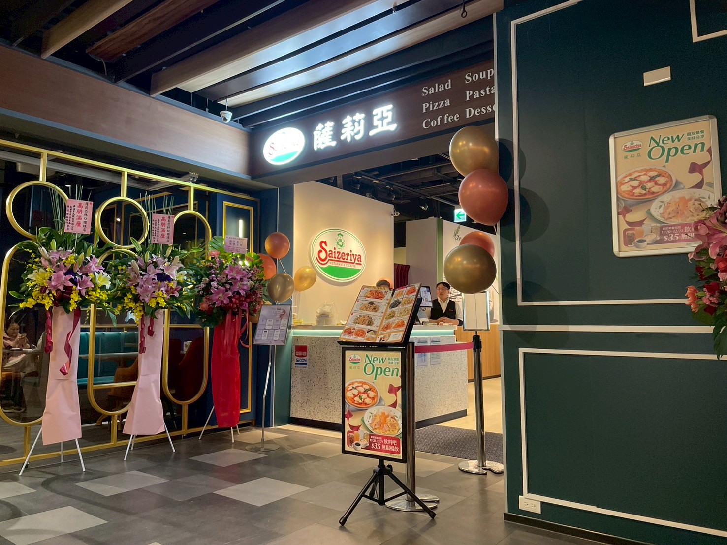 長型配置的用餐空間明亮寬敞,溫潤木質搭配經典綠色座椅,營造出舒適自在的用餐氛圍。大片落地窗引入自然光,城市景緻相伴,讓每一次用餐都多了份輕鬆愜意。部分地板延用,深色木紋地板與新作地板拼接,設計劃分出用餐區域與走道,動線筆直清晰,中央走道寬敞。天花採開放式黑色工業設計,搭配軌道燈與嵌燈,整體視覺開闊,風格呈現現代簡約帶有工業感。牆面設有品牌視覺牆,具有明確識別度與品牌形象。